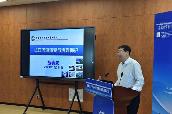 中国工程院院士、中国水利水电科学研究院胡春宏作《长江河道演变与治理保护》特邀报告